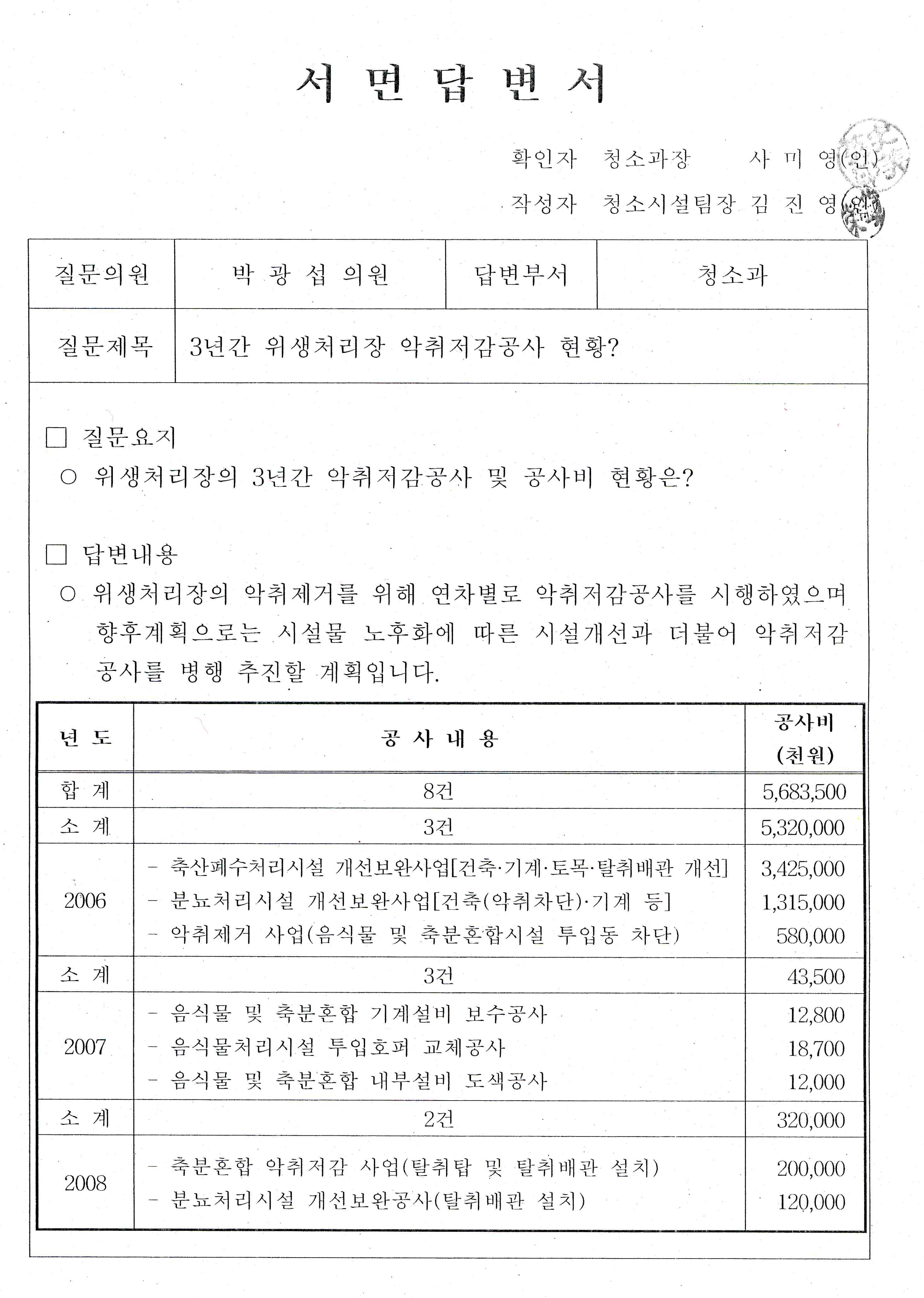 질의답변은 의사일정에 기재된 대로 건설교통국, 환경관리국, 농업기술센터 순으로 진행하겠습니다.