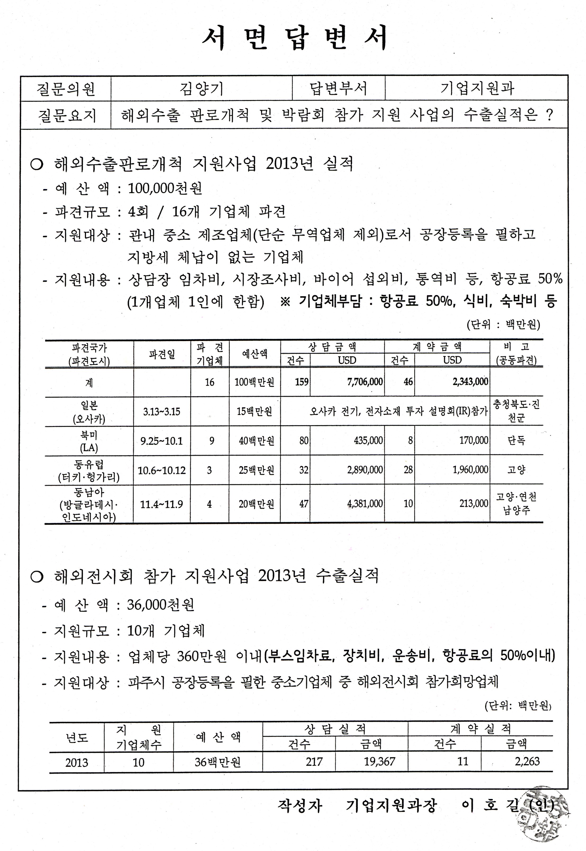 ○ 김양기 위원 그러니까 이 대회에 참석도 안하고 답변하시는 것 아니에요?