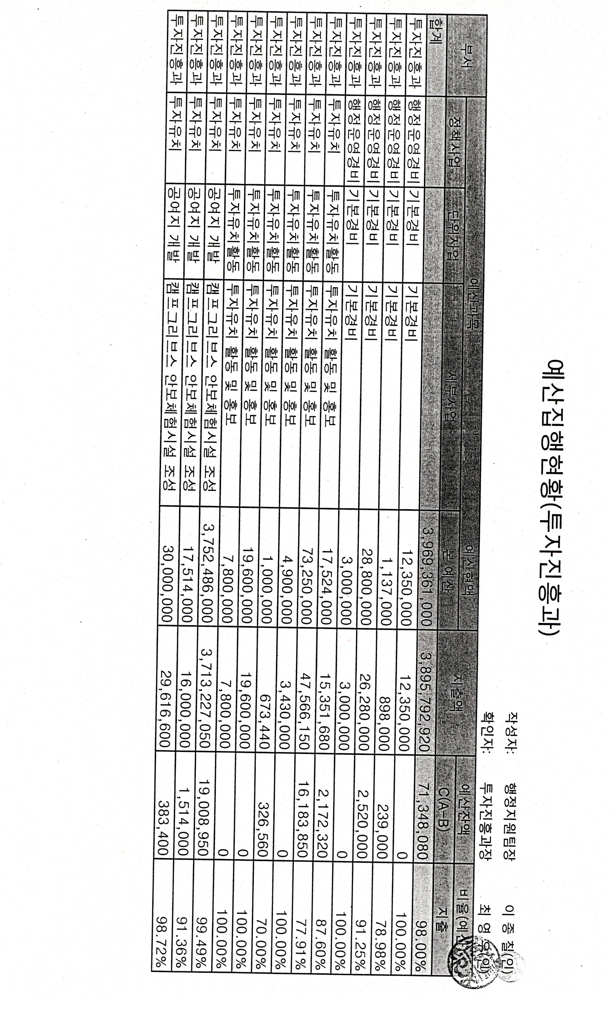 이 또한 소송비용 관련된 부분인데 현재 도시균형발전국 투자진흥과 소관으로 해서 파주시 법원읍 오현리에 무건리 훈련장 주변지역 주민분들이 소송에 패소함으로 인해서 소송비용 청구에 대한 부분들이 투자진흥과에서 진행되고 있습니다.
