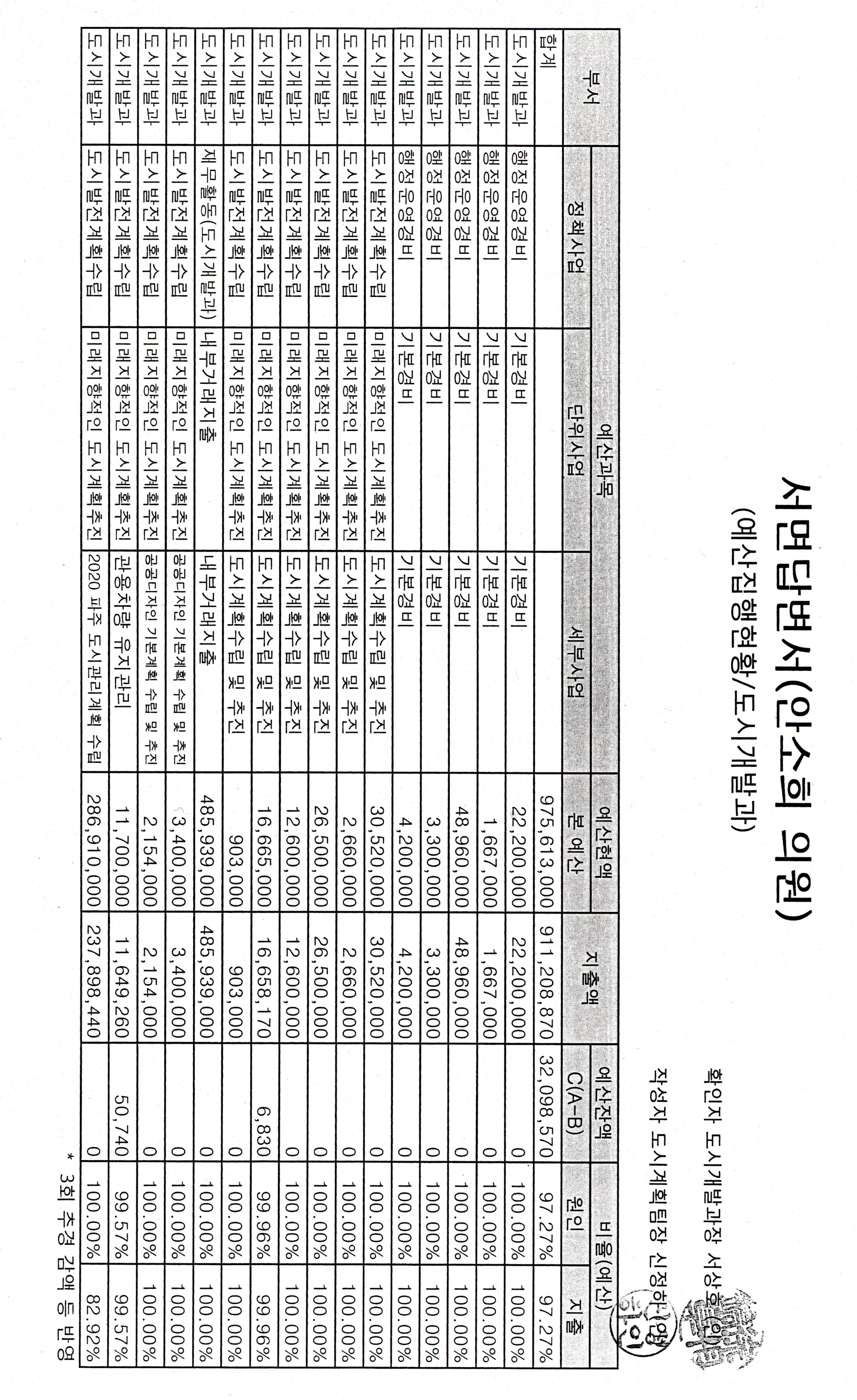 관련해서 올해도 도시계획 공람공고료 집행결과에 대해서 서면답변해 주시기 바랍니다.