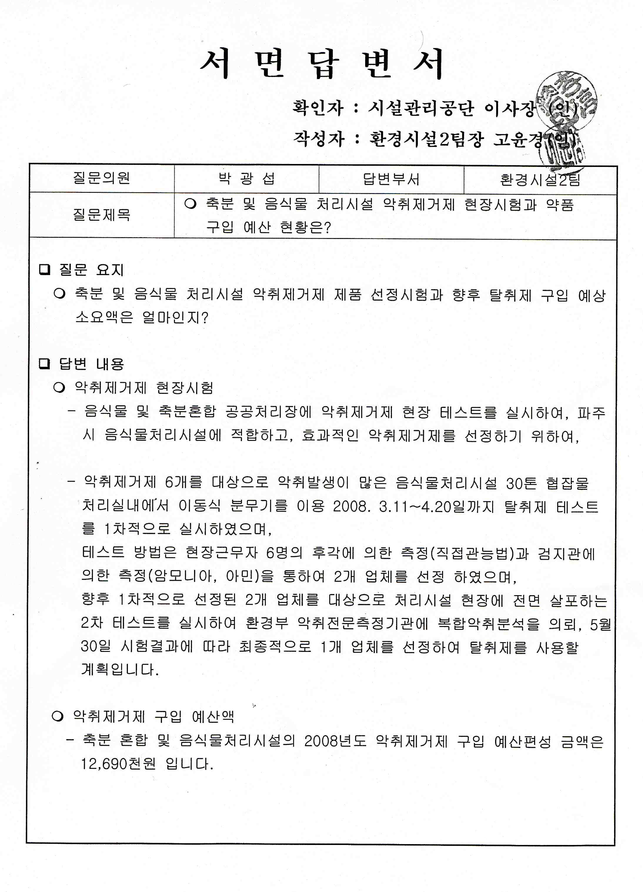 시설관리공단이사장 李淳鎔 직원 2인