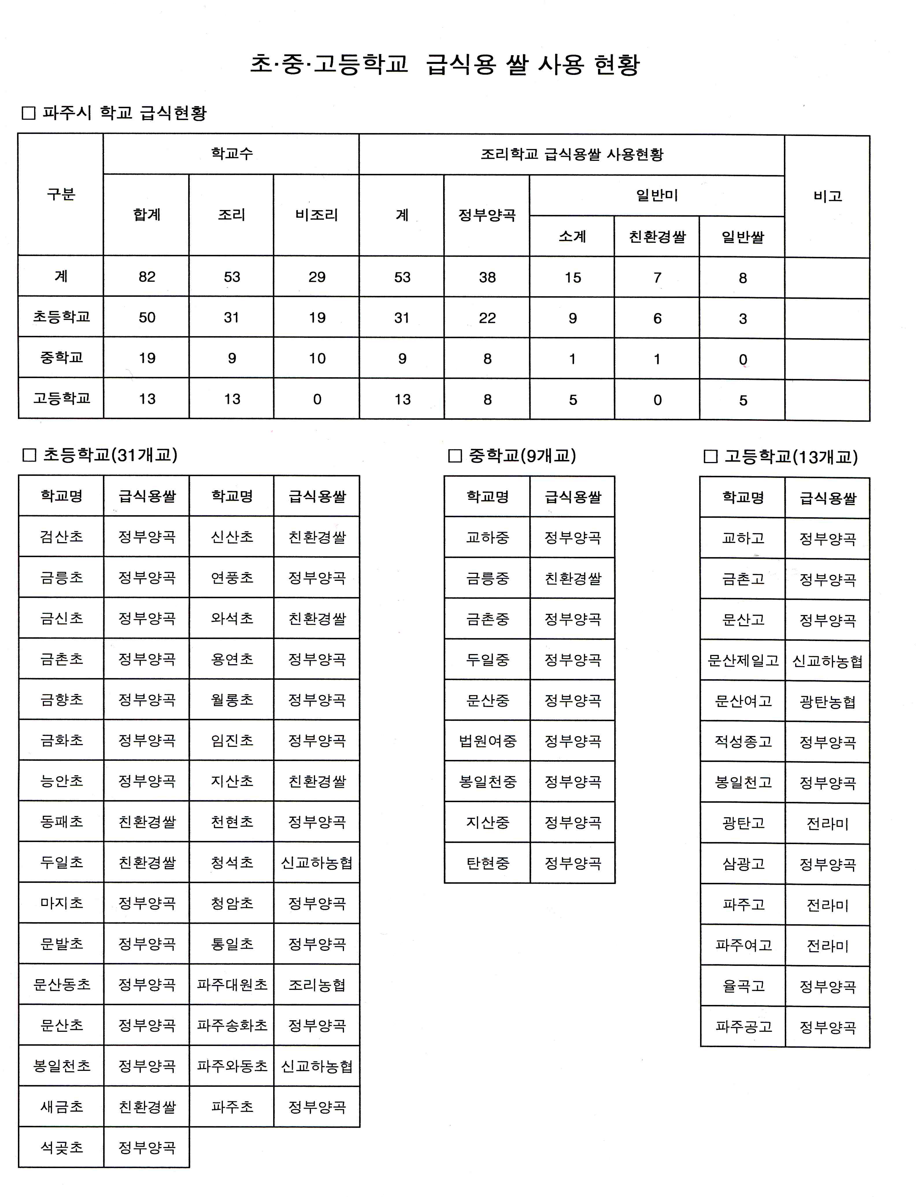 친환경 쌀에 대한 것은 금년 5,000만원을 확보해서 추진했는데 내년에는 1억원으로 전 학교를 대상으로 했는데 82개 학교 중에 53개 학교만 조리하는 학교예요.