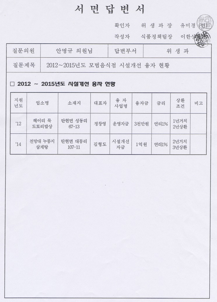 왜 질의드렸냐면 저희가 시정조치로 운영 검토하겠다고 하셨는데 서면으로 가볍게 ‘검토, 추진중’으로 끝냈기 때문에 뒤에 후속으로 준비하고 있는 것이 없기 때문에 다시 한번 질의드린 거거든요.
